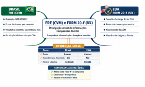 As companhias abertas brasileiras devem apresentar o Formulário de Referência à Comissão de Valores Mobiliários. Nos Estados Unidos, emissores estrangeiros com valores mobiliários registrados ou listados na NYSE ou Nasdaq devem apresentar o Form 20-F à Securities Exchange Commission (“SEC”), geralmente em até quatro meses após o encerramento do exercício social.